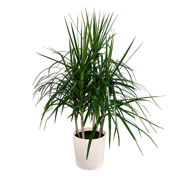 Add a touch of elegance to your space with the Dracaena Marginata 'Green' from Lakewood Plant Company, a stunning variety of the popular Dracaena family. Originating from Madagascar, this Dracaena Marginata captivates with its slender, arching leaves and striking green coloration. Whether displayed in homes, offices, or contemporary interiors, it's not just a plant; it's a statement piece that enhances any environment with its grace and beauty.