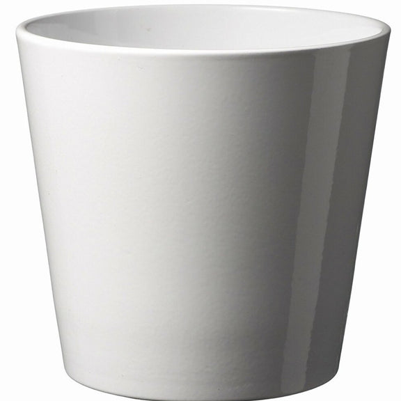 Introducing our "Pure Radiance" Shiny Tapered Planter from the Modern Collection, exclusively available in a pristine white finish. Elevate your indoor garden with this sleek and lustrous planter, designed to accommodate both 10-inch and 6-inch growers' pots.